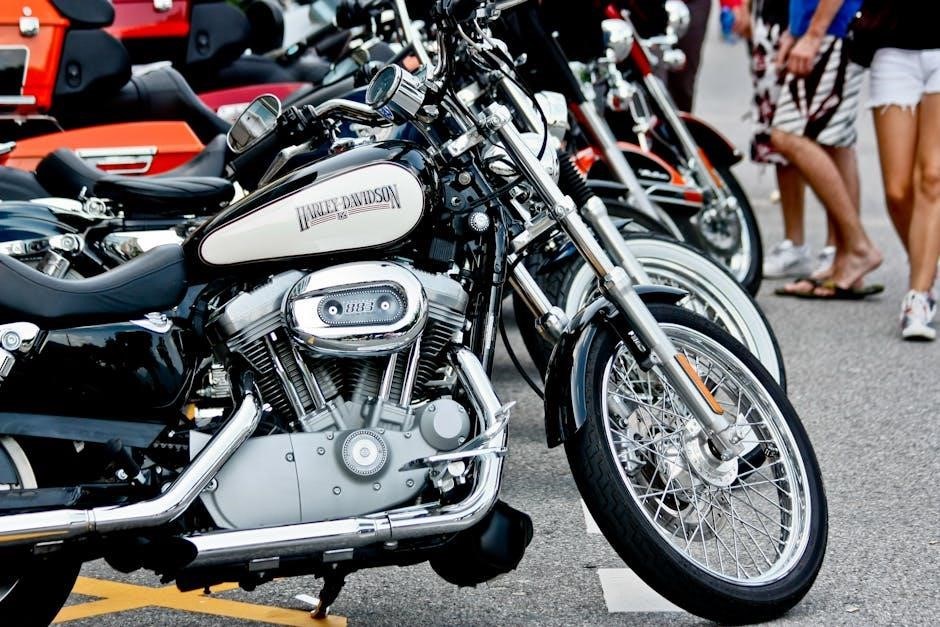 The manuals include wiring diagrams, parts lists, and troubleshooting guides, essential for maintaining the V-Rod’s distinctive style and powerful performance.
