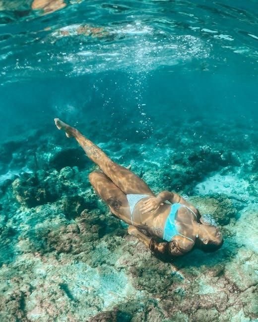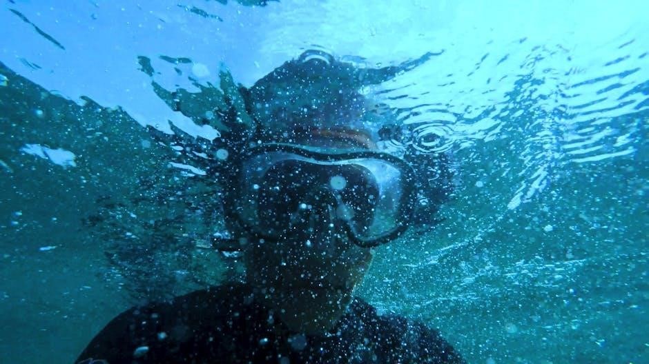 The PADI Open Water Diver Manual PDF dedicates significant attention to mastering essential surface water skills. It provides detailed instructions on proper mask fit, clearing techniques for water intrusion, and preventing fogging. Finning techniques are thoroughly explained, focusing on efficient propulsion and minimizing effort. Snorkel use is covered, including surface swimming and clearing the snorkel. Students learn to comfortably and confidently perform these skills, establishing a solid foundation for underwater exploration and ensuring a safe and enjoyable diving experience before venturing below the surface.