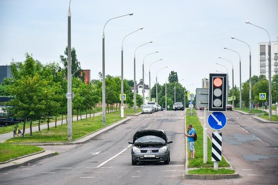 Practice questions frequently test knowledge of different sign types – regulatory, warning, and guide signs. Understanding the shape and color of each sign provides immediate clues to its meaning. The PDF materials will also cover proper procedures for handling flashing signals, pedestrian signals, and railroad crossings.